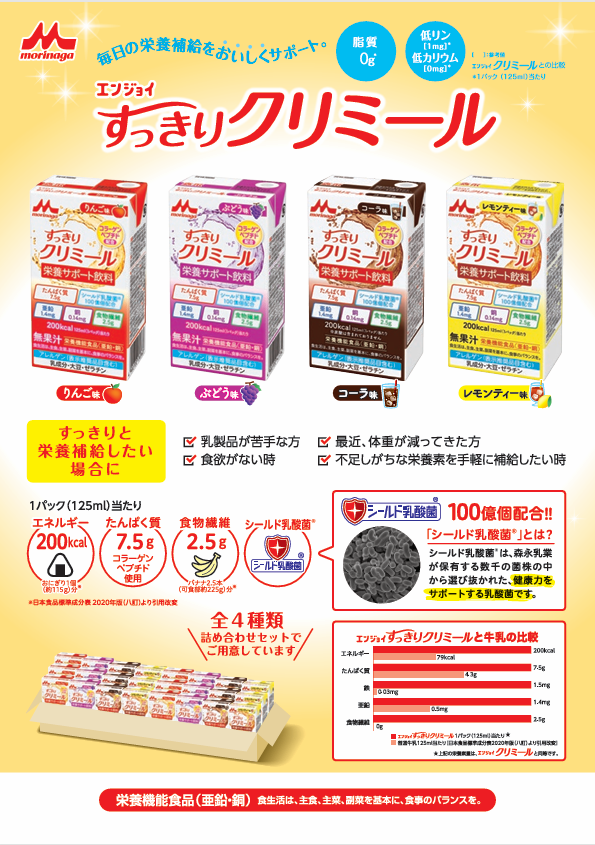👉栄養補助飲料【エンジョイクリミール】についてはこちらをご参照ください。