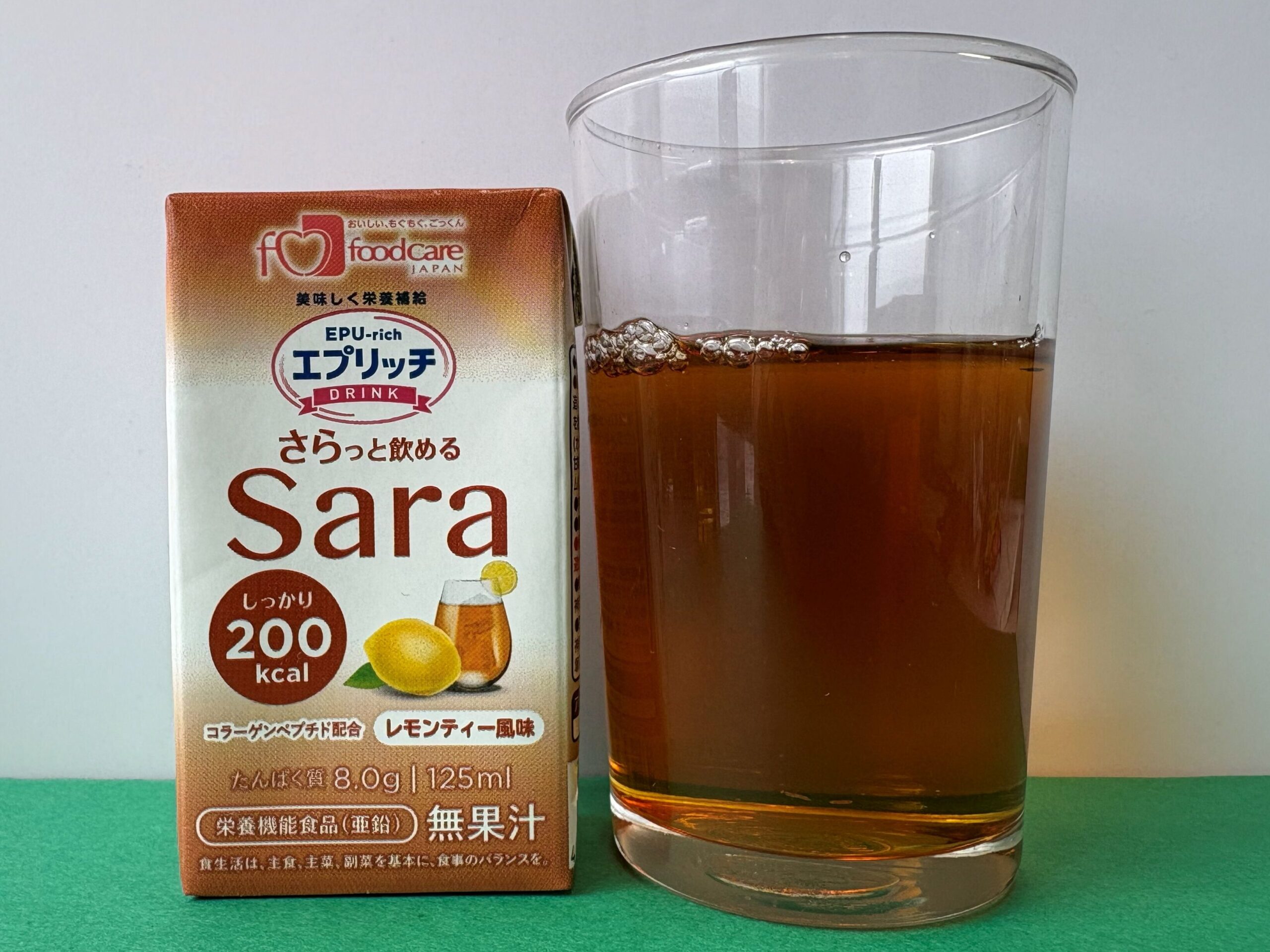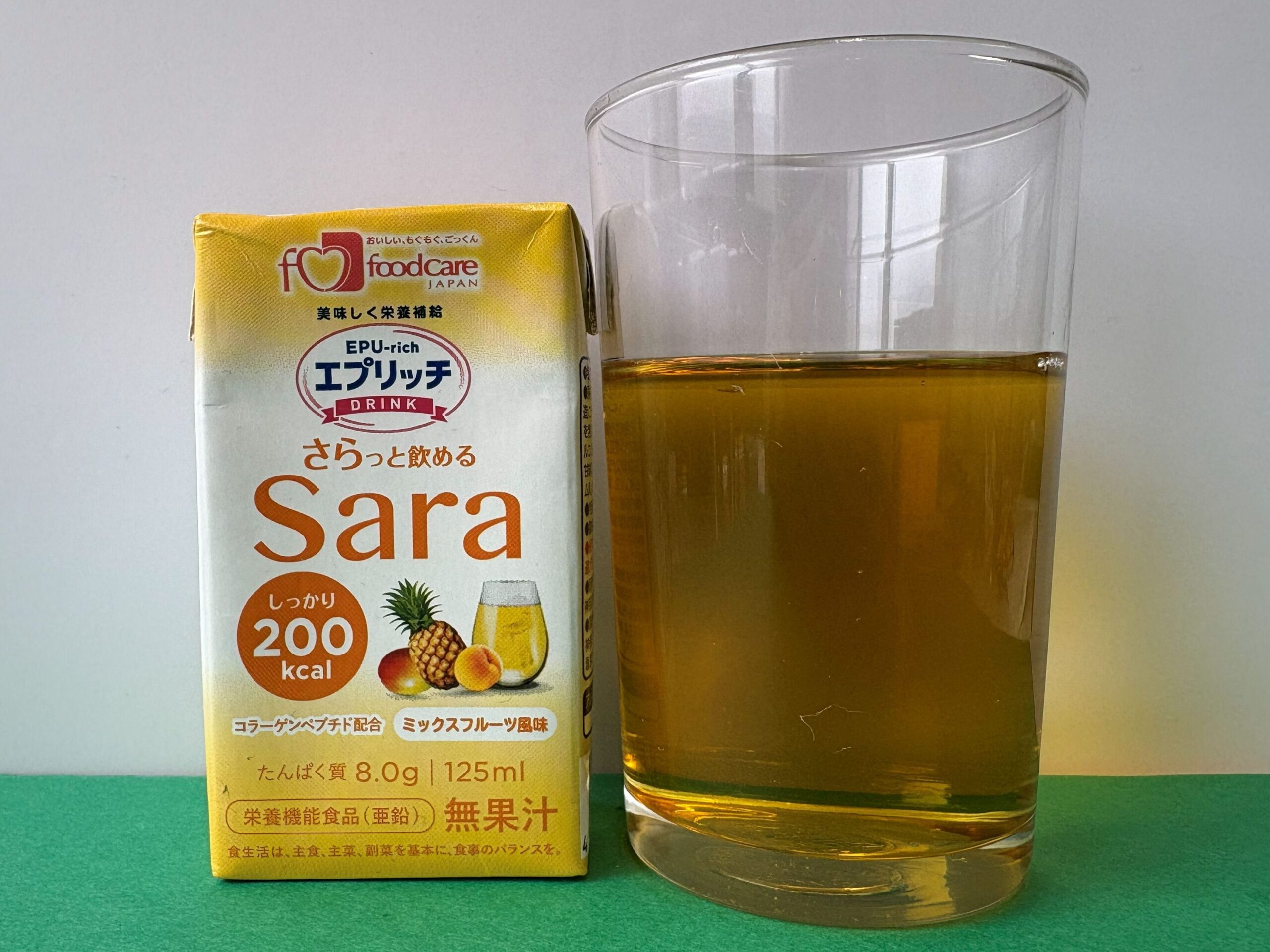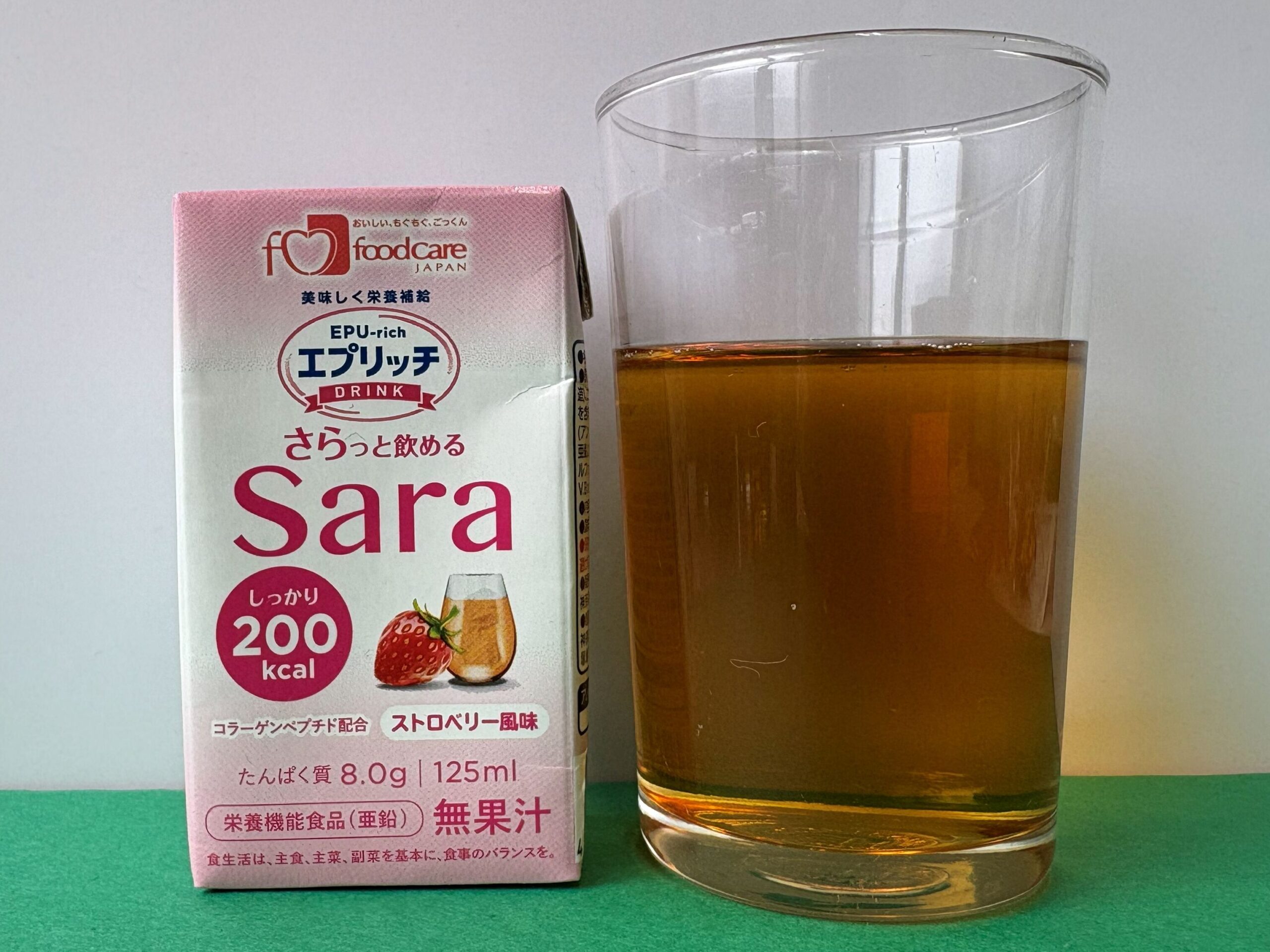 すっきりタイプのエプリッチドリンクSaraですが、すっきりクリミールと同様、脂質ゼロで、コラーゲンペプチドを配合した商品です。