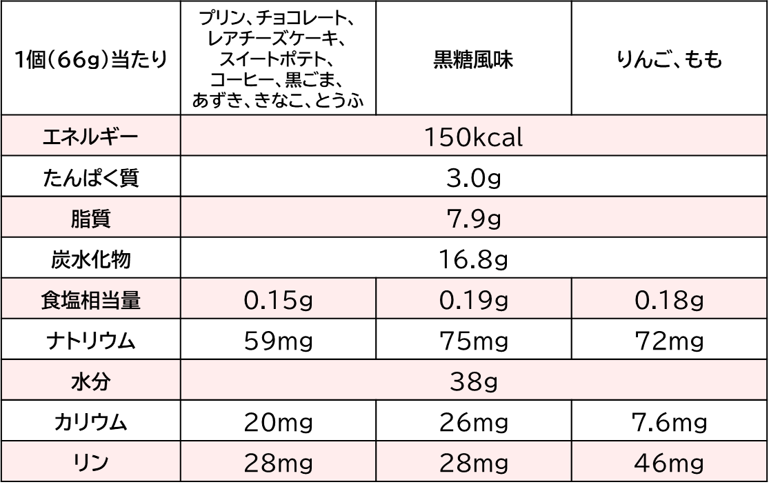 1個66g当たり、どの味も150kcal、たんぱく質3.0gが摂取できます💪✨
